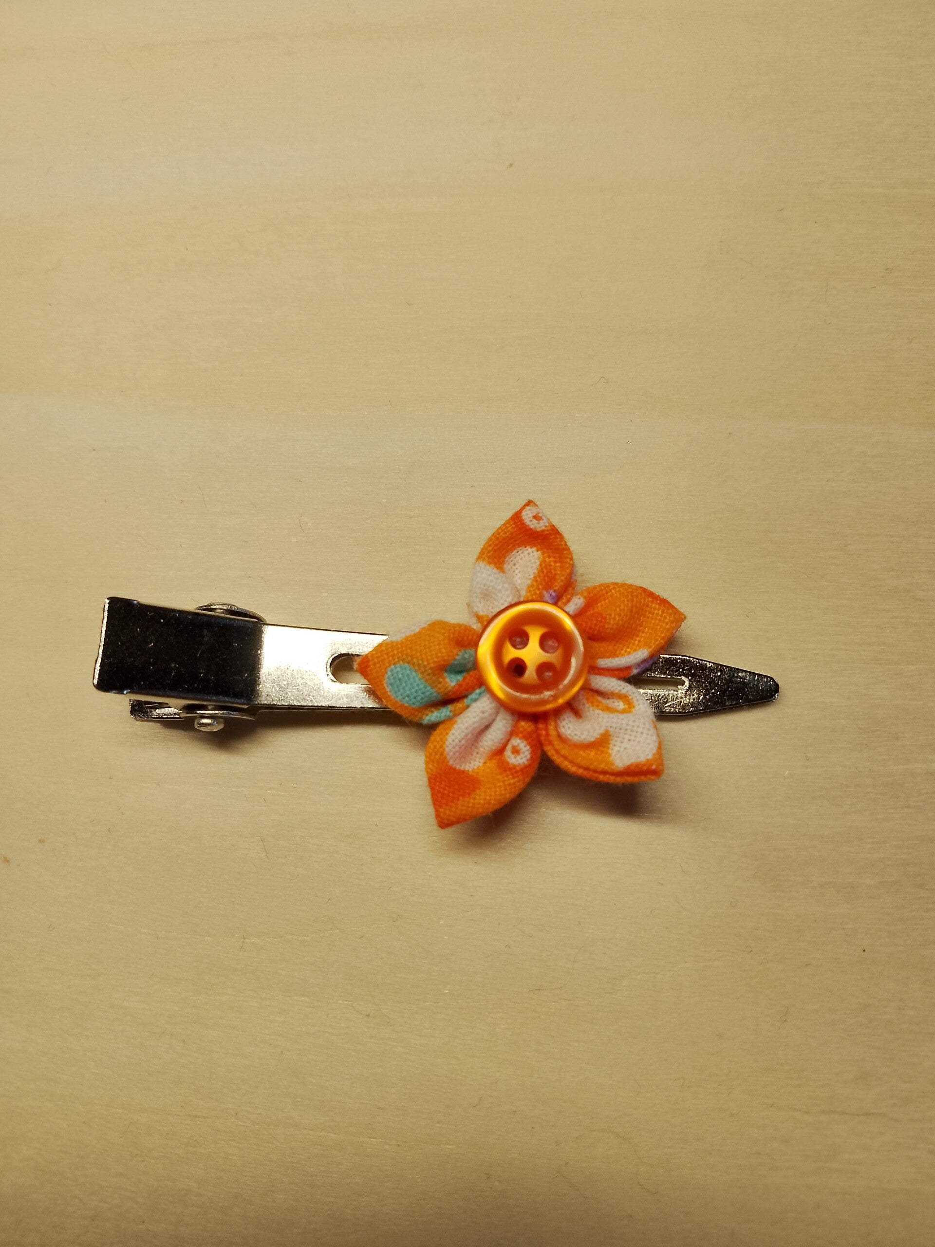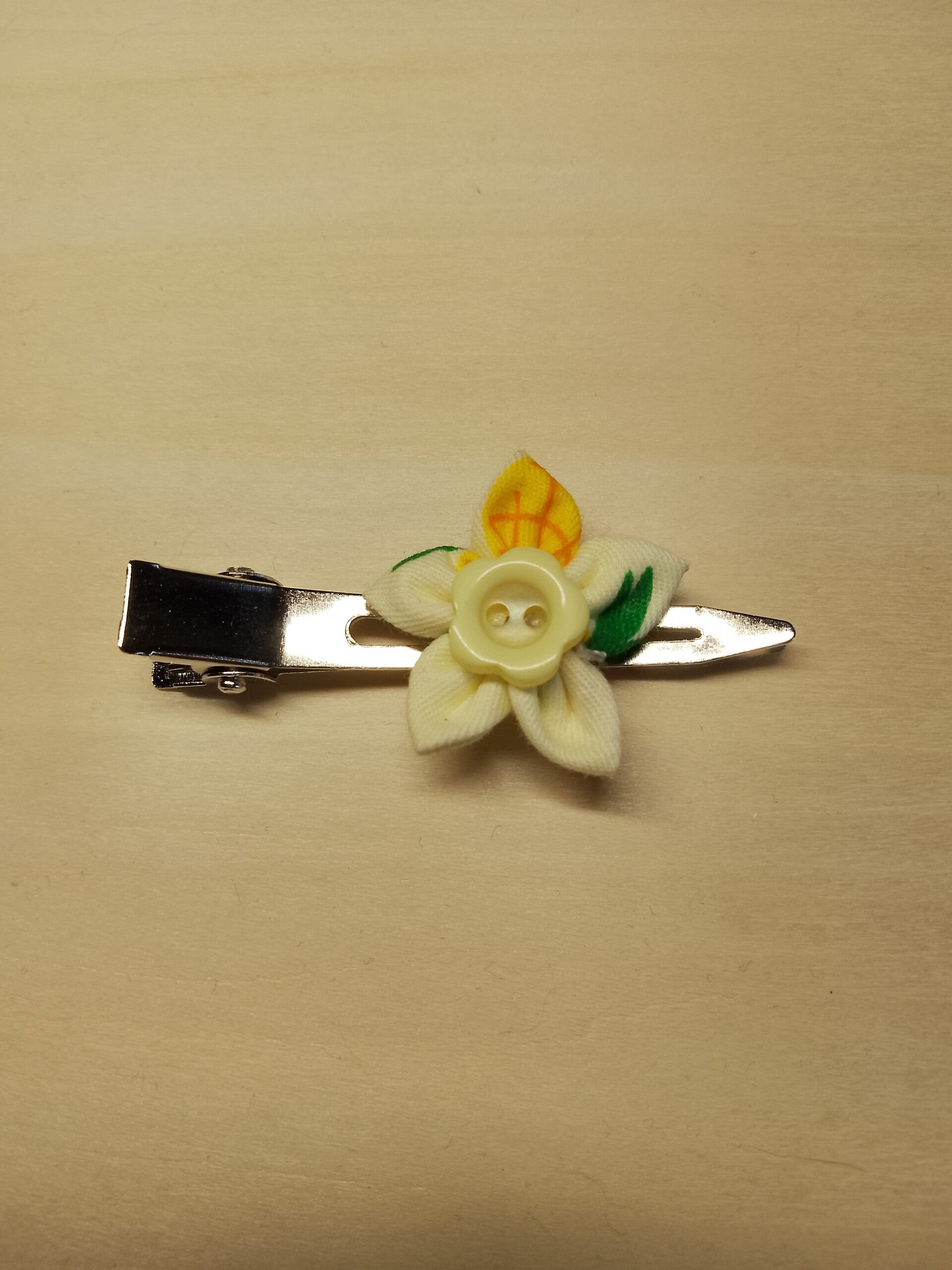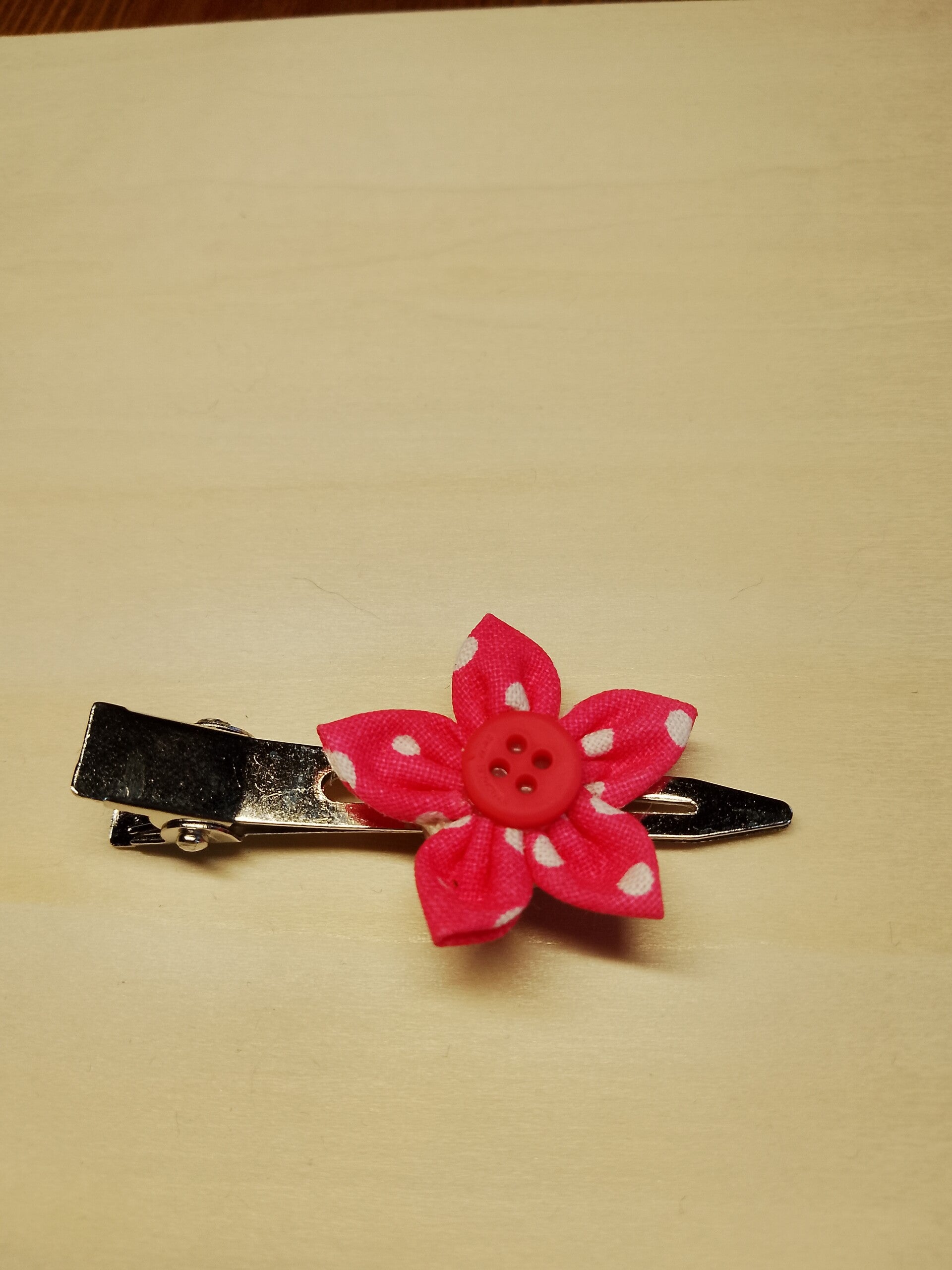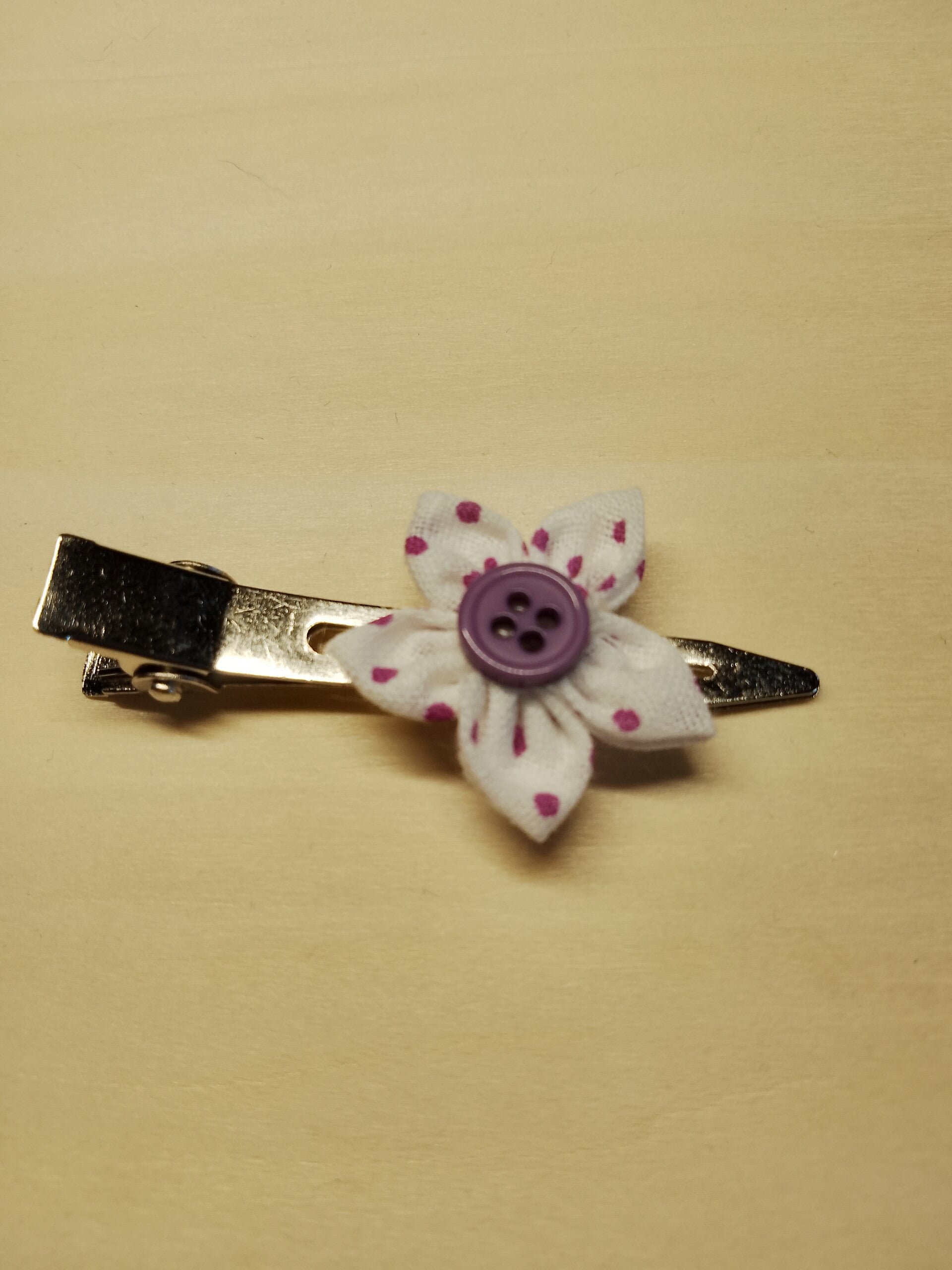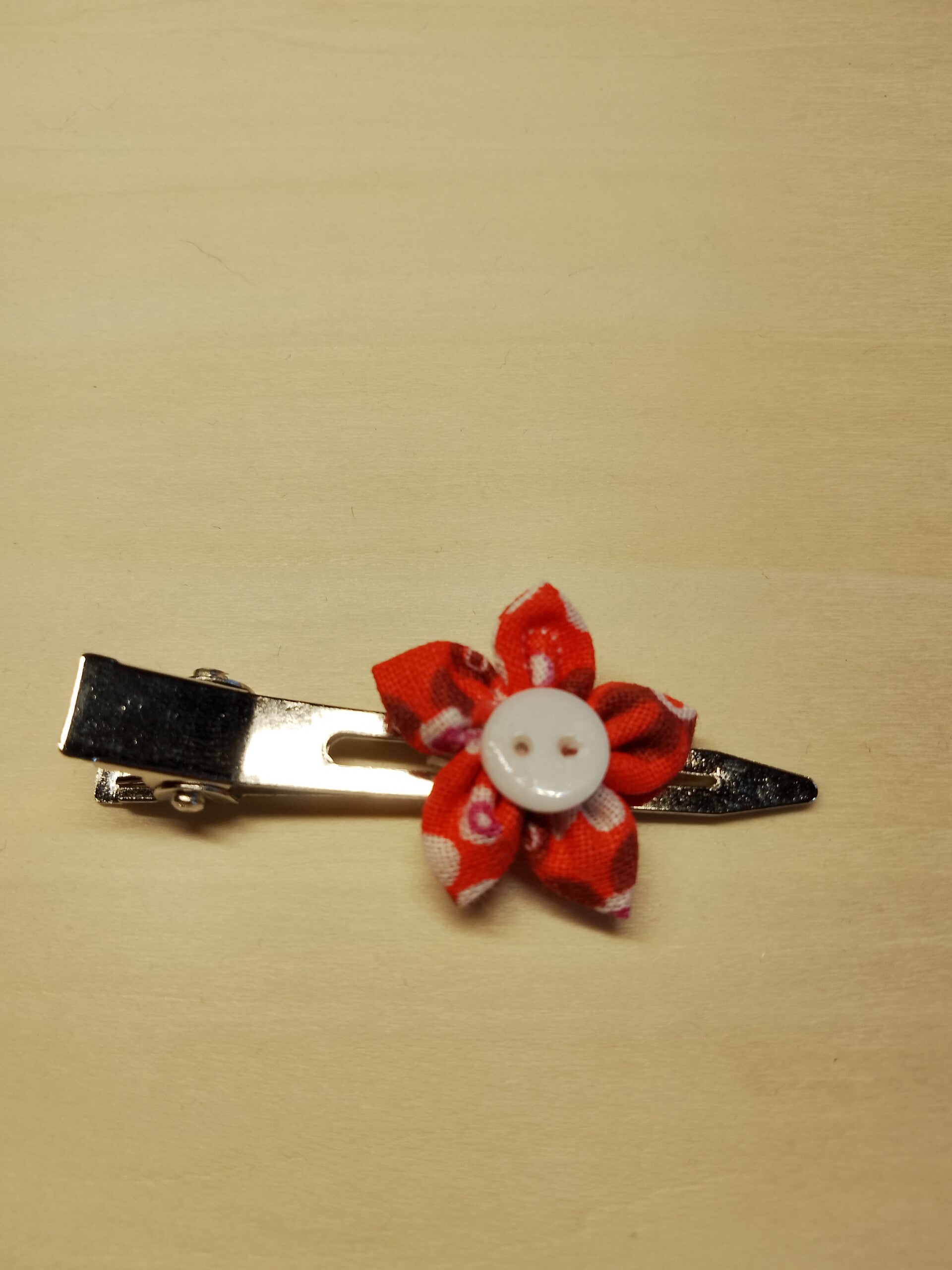 Ajoutez une touche de douceur et de raffinement à votre coiffure avec nos adorables barrettes fleurs en tissu, confectionnées à partir de chutes de tissu et de boutons pour un style unique et éco-responsable.