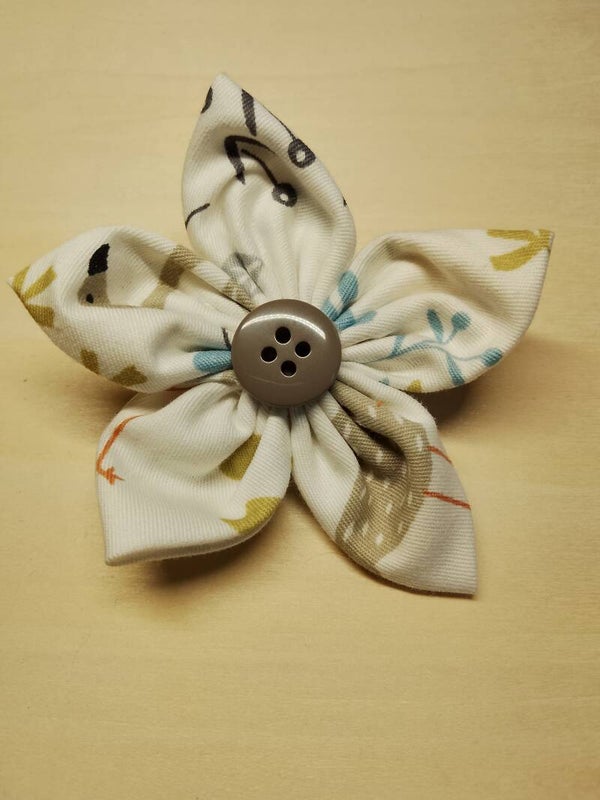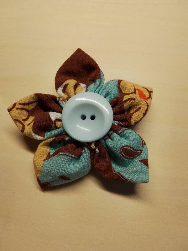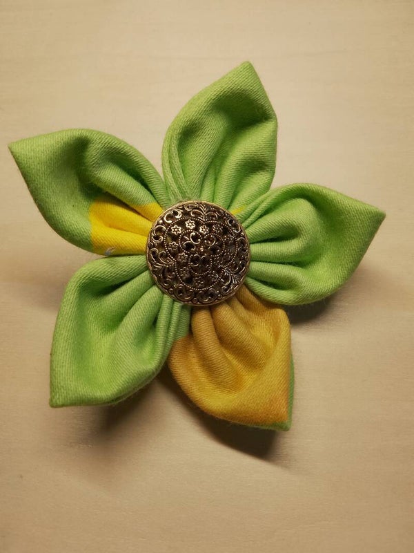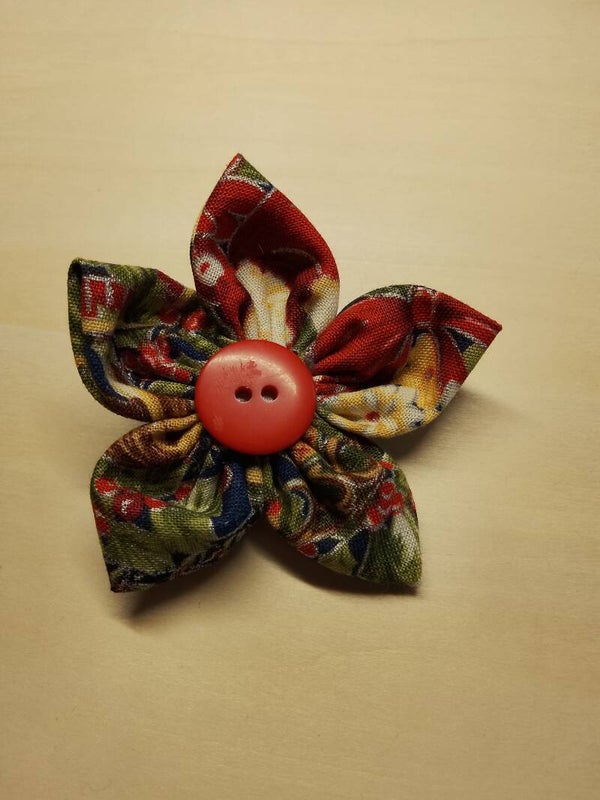 Sublimez vos tenues et apportez une touche de fantaisie avec les élégantes broches fleurs en tissu, confectionnées avec amour à partir de chutes de tissu et de boutons pour un style unique et responsable.